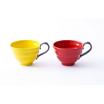 有田焼 スープカップ レッド(取っ手黒)とイエロー(取っ手黒)のペアセット | 有田焼 八右衛門窯 大慶