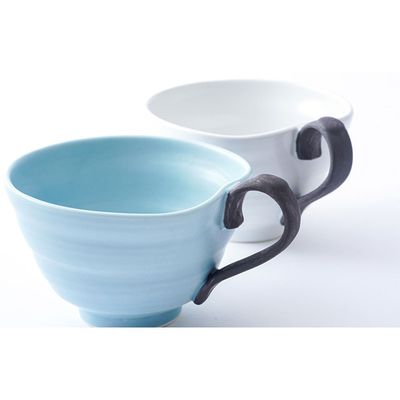 有田焼 スープカップ 水色(取っ手黒)とホワイト(取っ手黒)のペアセット| 有田焼 八右衛門窯 大慶