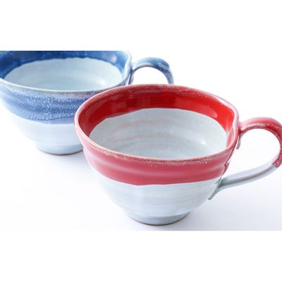 有田焼 スープカップ 掛分レッドと掛分ブルーのペアセット| 有田焼 八右衛門窯 大慶