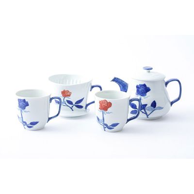 【 送料無料】有田焼 伝平窯 バラ絵コーヒードリッパー(大) ポット(大) ペアマグの4点セット (有田焼 八右衛門窯 大慶)