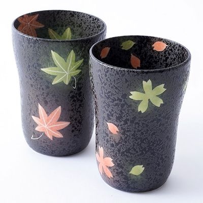 ビールの泡がクリーミーになる!有田焼 スリムカップ 桜と紅葉の春秋ペアセット | 有田焼 八右衛門窯 大慶