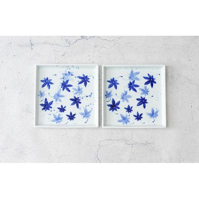 有田焼 伯父山窯 染付楓紋14cm角皿の2枚セット (有田焼 八右衛門窯 大慶)