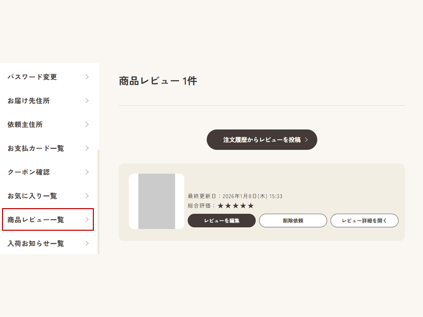 ※レビューの削除をご希望の場合も、「商品レビュー一覧」よりご対応ください。