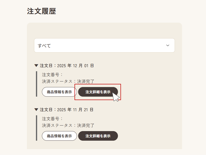 注文番号はご注文完了メールやマイページからもご確認いただけます。