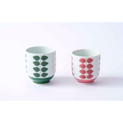 波佐見焼 グリーン巻木の葉・朱巻木の葉 コップ 2色セット