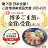| 原材料 | <ごま鯖>真鯖(玄界灘産)、しょうゆ(大豆・小麦を 含む)、料理酒、本みりん、ごま、砂糖/ア ルコール、カラメル色素、調味料(アミノ酸 等)、保存料(パラオキシ安息香酸)、甘味料 (ステビア)、酸味料 <ごま鯛>真鯛(玄界灘産)、薄口しょうゆ(大豆・小麦を含む)、料理酒、本みりん、 ごま、砂糖/アルコール、調味料(アミノ酸等)、保存料(パラオキシ安息香酸)、甘味 料(ステピア)、酸味料 |
