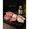 | 原材料 | 黒毛和牛(特選ロース/特選ヒレ/ハラミ)、錦雲豚バラ 75g、日向鶏モモ、厚切り燻製ベーコン、醤油(国内製造)、砂糖、たまねぎ、りんごピューレ、アミノ酸液、おろしにんにく、すりごま、豆味噌、清酒、いりごま、(一部に大豆、小麦、りんご、ごまを含む) |