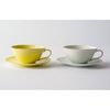 お茶請けにもソーサーにも使えるしのぎ中皿と、シリーズ新商品のカフェオレカップのペアセットです。