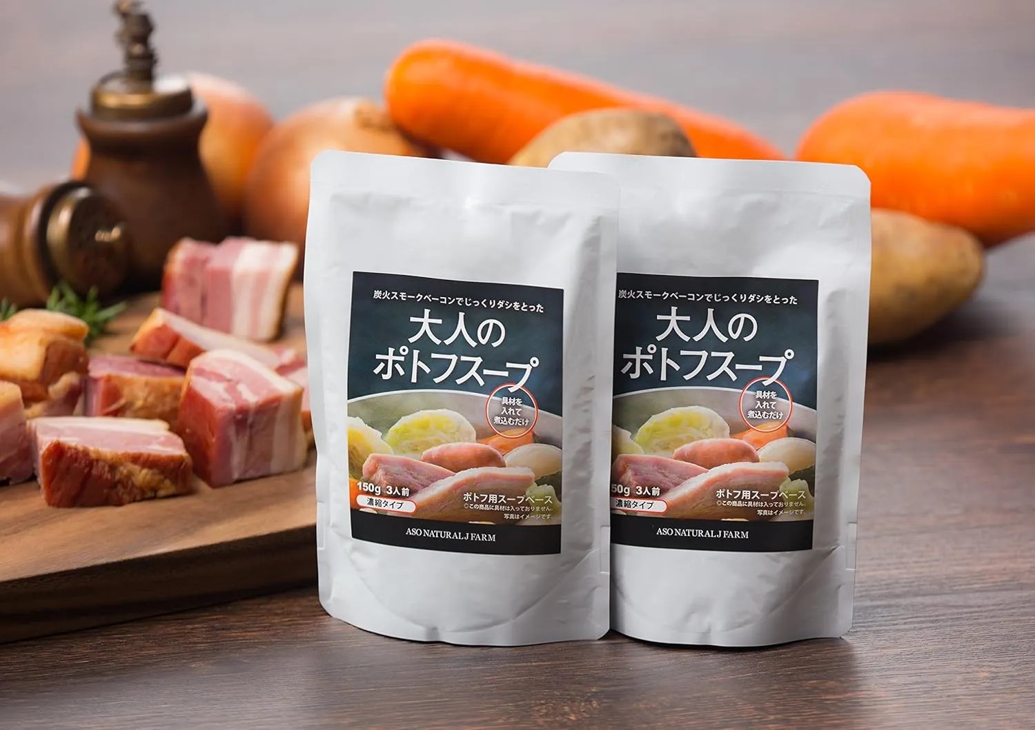 世界三大コンテストにて連続して金賞を受賞した「炭火スモークベーコン」をベースにして造ったポトフスープです。