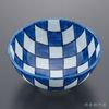 呉須と白磁で石畳状に構成したその伝統文様を、切れ味のいい筆さばきで描いた「染付市松紋」の飯碗です。