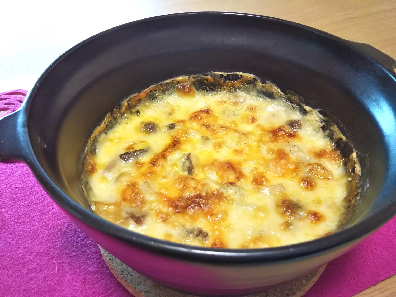 具材を炒めた後、チーズをのせてそのままオーブンで焼くこともできます。