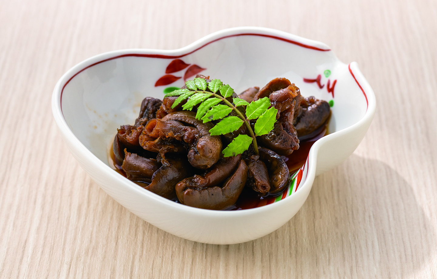 山椒煮 山椒と秘伝のたれを一緒に煮込んだちょっぴりスパイシーな味がご飯によく合います。