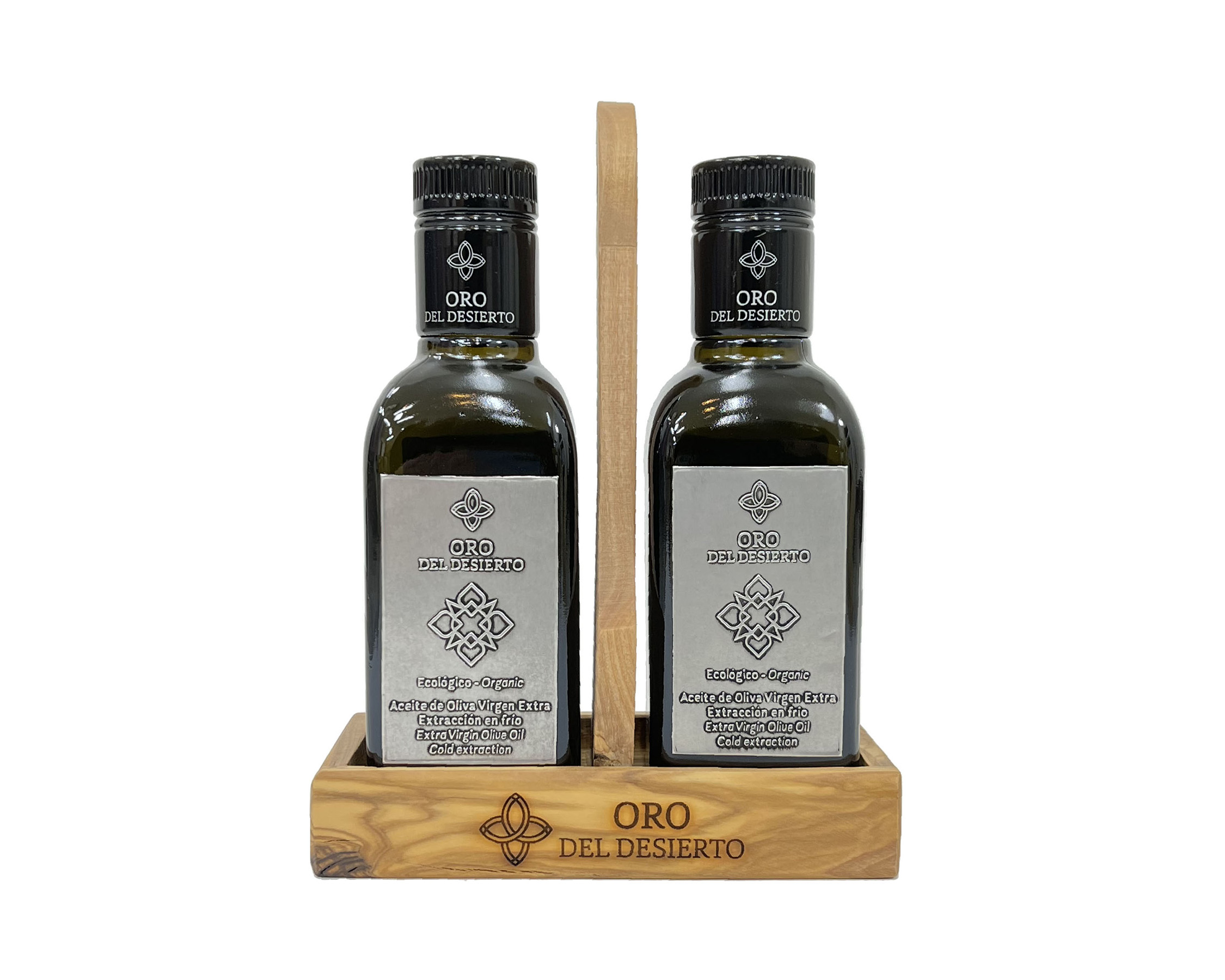 【オリーブの木でできたトレー付250ML 2本セット】オーガニック・エキストラバージン・オリーブオイル「オロ・デル・デシエルト」-アルベキーナ/ピクアル