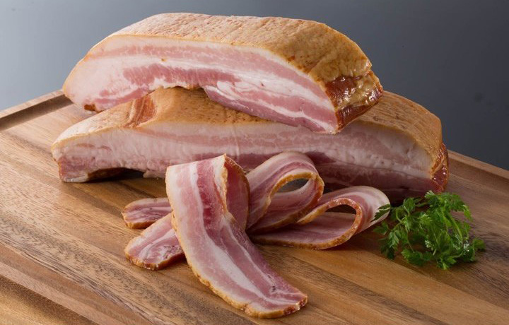 世界で最も権威ある、ドイツ農業協会主催 DLG大会で、金メダルを受賞した「阿蘇の逸品」ハム・ソーセージは多数あります。その中でも一番のお薦めは、炭火スモークベーコンです。
