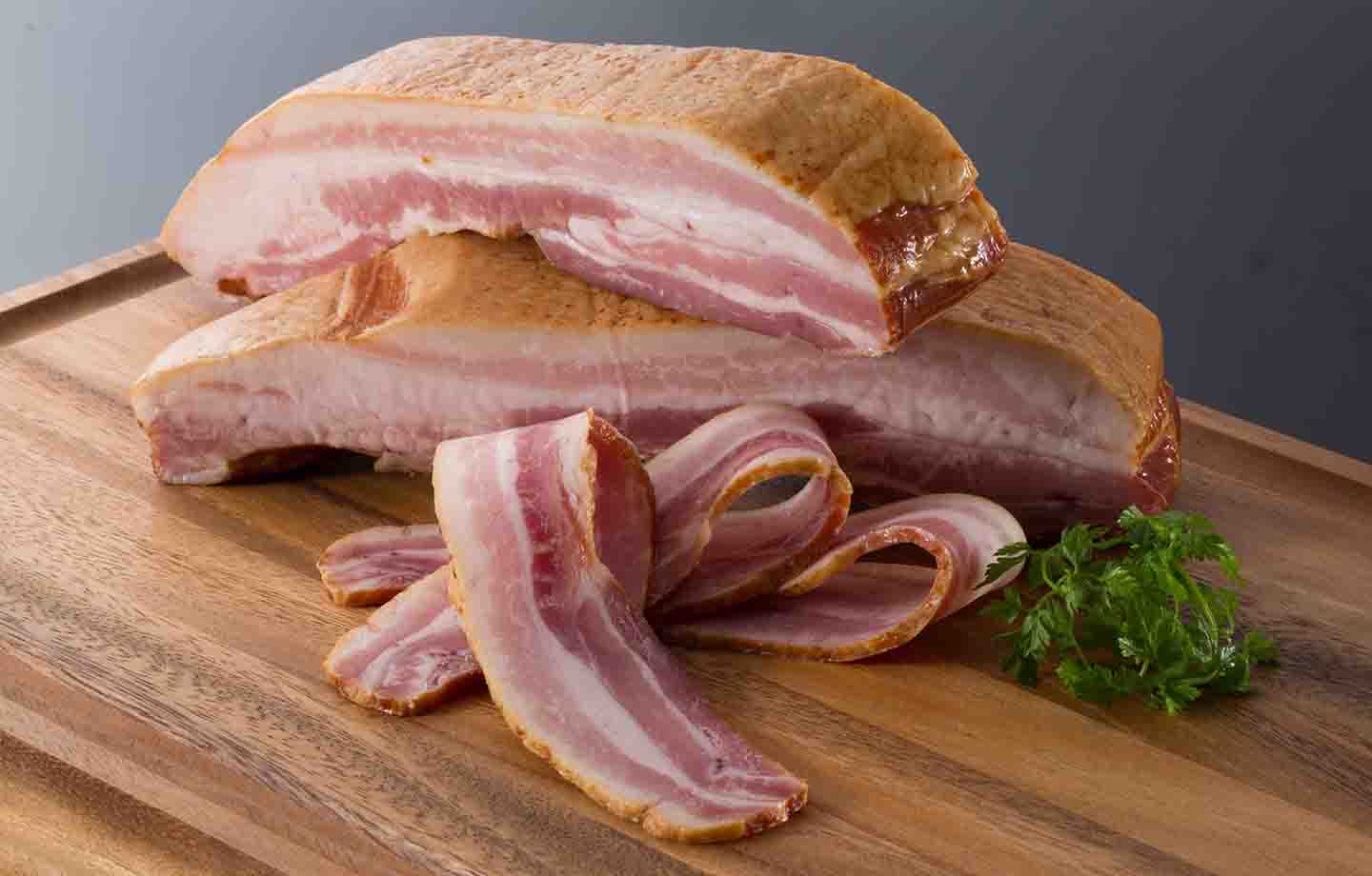 世界で最も権威ある、ドイツ農業協会主催 DLG大会で、金メダルを受賞した「阿蘇の逸品」ハム・ソーセージは多数あります。その中でも一番のお薦めは、炭火スモークベーコンです。