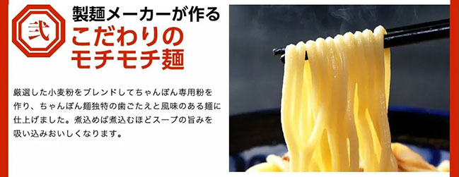 長崎の食堂にも麺をおろしている創業80年の老舗の製麺所が、家庭用に簡単に調理できる本場の味のちゃんぽんを作りました。お鍋一つで簡単に作れるので、長崎県外にお住いの方でも手軽に本場の味がお楽しみいただけます。
