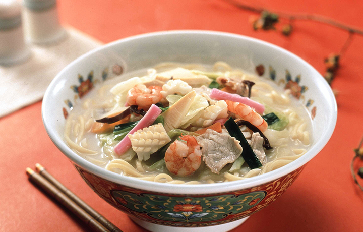 長崎特産のあごだしの旨味を活かした白濁スープと長崎特有のかん水「唐あく水」を使用した、本場長崎のめん。長崎のお土産として人気の商品です。