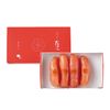 | 原材料 | 原材料:すけとうだらの卵巣(米国またはロシア)、食塩、焼酎、発酵調味料、たん白加水分解物、唐辛子、かつお魚醤、かつお節エキス、還元麦芽糖、いわし魚醤、/甘味料(ソルビット)、調味料(アミノ酸等)、酸化防止剤(V.C)、酵素、着色料(赤102、黄5、赤3)、発色剤(亜硝酸Na)、(原材料の一部に大豆、ゼラチンを含む。) アレルゲン:原材料の一部に大豆、ゼラチンを含む。 |