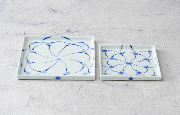 ・サイズ:18cm角皿:約18×18×高さ1.7㎝ 14cm角皿:約14.3×14.3×高さ1.7㎝