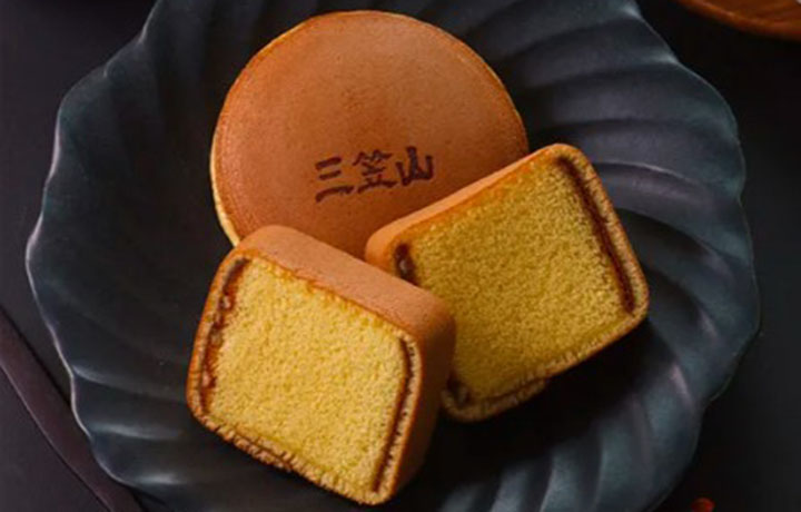 文明堂総本店自慢のカステラを三笠山の皮で巻きました。