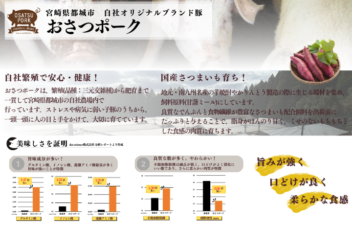 保存料・着色料・発色剤・化学調味料無添加の「安心・安全・美味しい」をとことん追及した「おさつポーク100%」の加工食品詰め合わせセットです。小さなお子さんからご年配の方まで、幅広く喜んで頂いております。大切な方への贈り物や自家用でもご満足頂けるセットです。ぜひ、ご賞味ください。