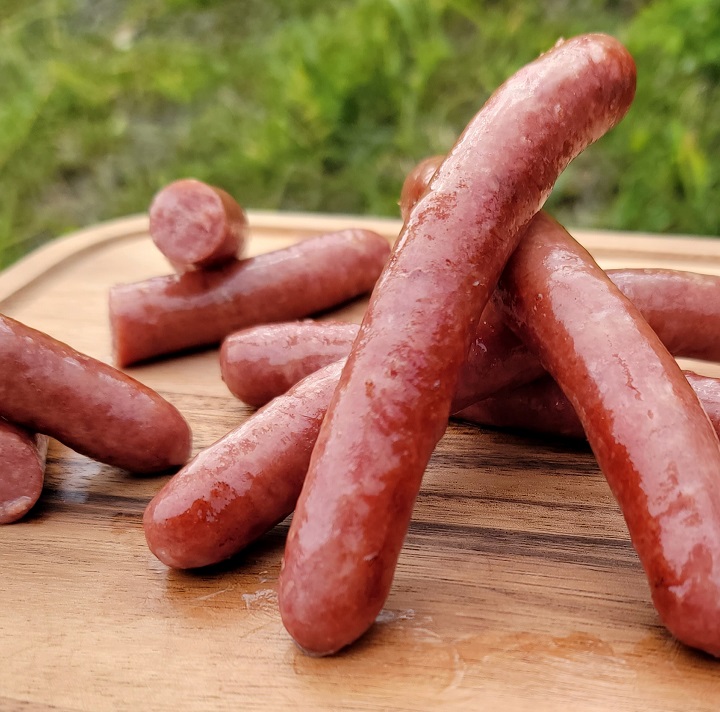 希少は黒毛和牛「筑穂牛」をウインナーにしました。噛んだ瞬間、筑穂牛の旨味があふれ出てきます。