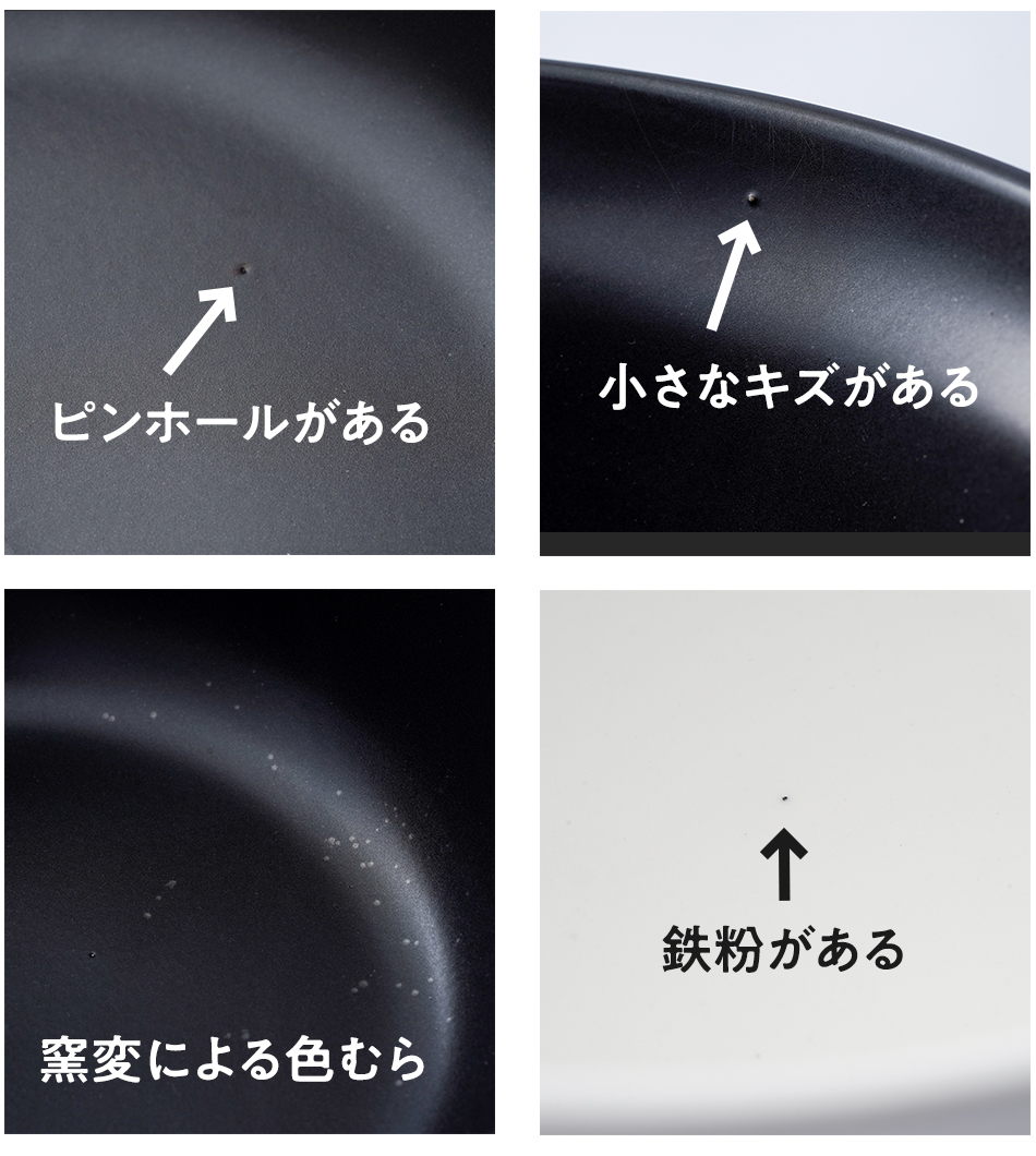 こちらは陶磁器製造中にできてしまう普段使いに差支えない程度の小さな傷、ピンホール、鉄粉、釉薬ムラ、貫入などのあるアウトレット商品となります。