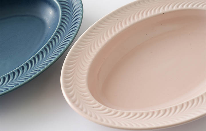 【波佐見焼 ローズマリー リムオーバルプレート デニム&ピンク 2色セット】