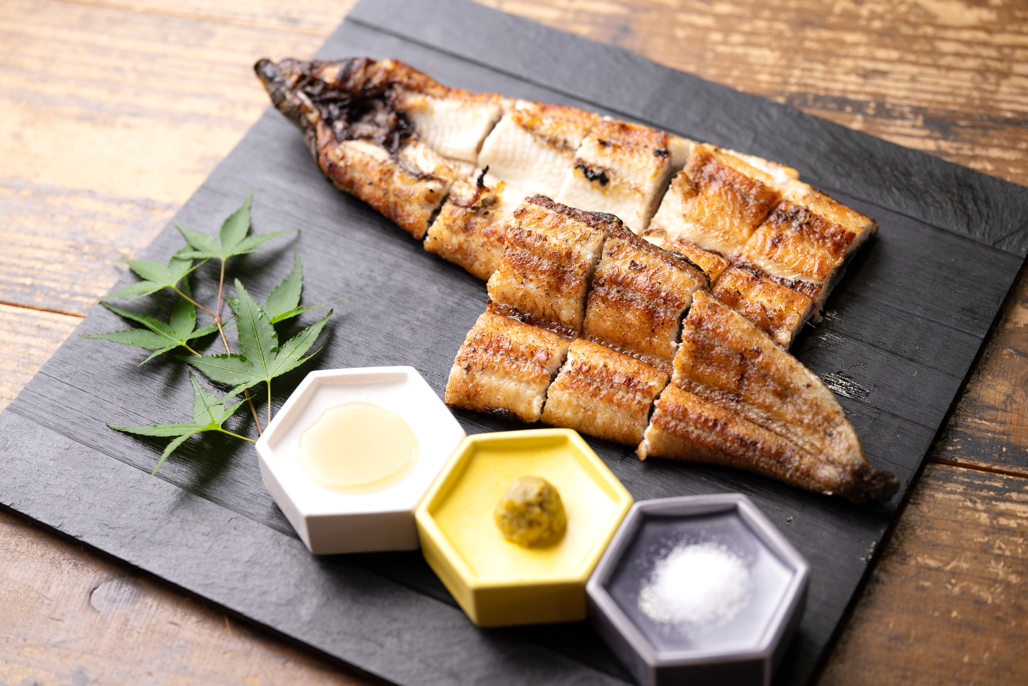 鰻本来の美味しさが味わえるのは、なんといっても白焼きです。蒸すとふわふわに、またはグリルで焼き戻すかフライパンをご利用になると皮がカリッと香ばしくなり、格別な美味しさとなります。生醤油+わさび、ポン酢+柚子胡椒、当店の本格たれ+生七味などでお召し上がりください。