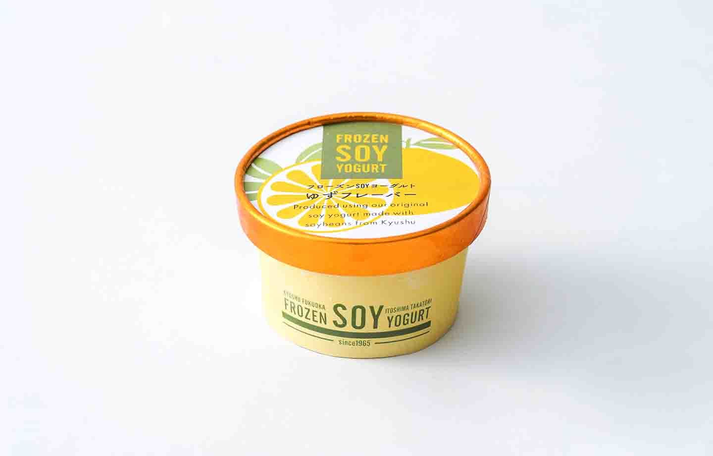 自社製造の豆乳から作った「植物性100%ヨーグルト」に、ゆず果汁を加えてフローズンアイスに仕上げました。甘さ控えめでさっぱりとした後味。乳製品を一切使用しておらずアレルギーの方にも安心して召し上がっていただけます。