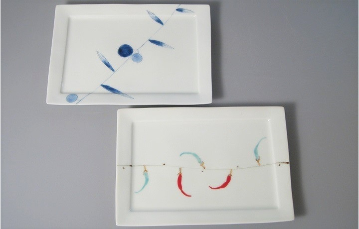 有田焼 一峰窯 長角トレイ hanahanaと染付リーフの2枚セット|大慶