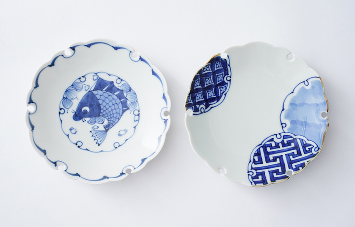有田焼 伯父山窯 雪輪5寸銘々皿 魚紋と雪輪紋の2枚セット |大慶