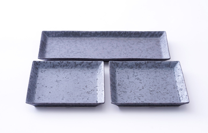 【送料無料】有田焼 黒サビ絞り プレート 3点セット | 金善製陶所