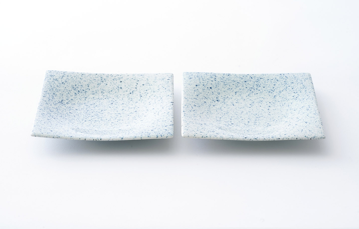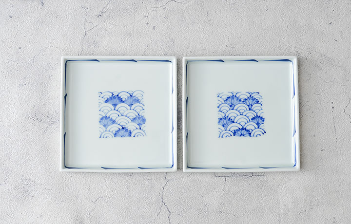 有田焼 伯父山窯 染付青海波14cm角皿の2枚セット (有田焼 八右衛門窯 大慶)