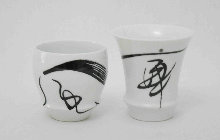 書家・岡西佑奈さん書の『華』と『風』のぐい呑みセットです。