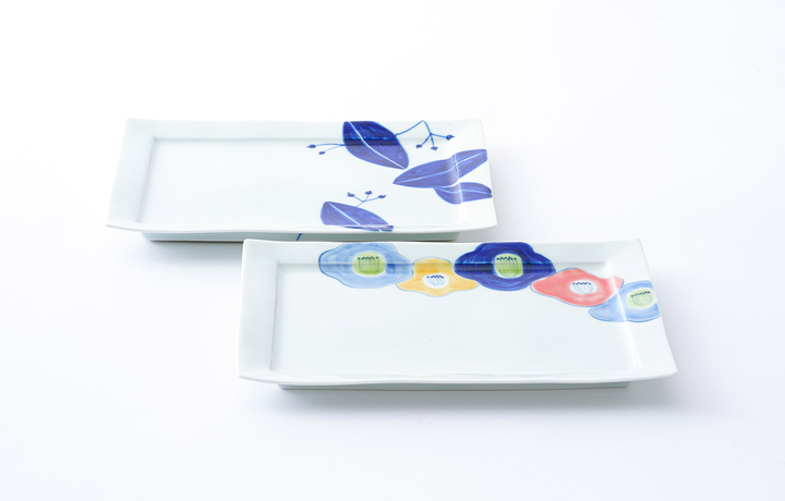 有田焼 長角トレイ hanahanaと染付リーフの2枚セット