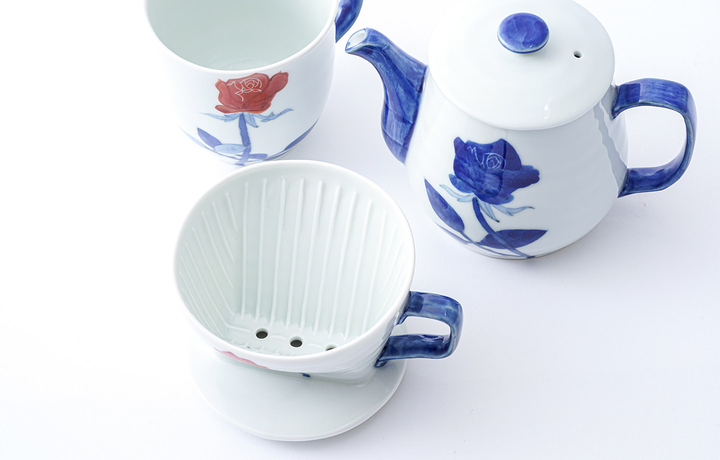 有田焼 バラ絵 コーヒードリッパー(小) ポット(小) マグカップ の3点セット