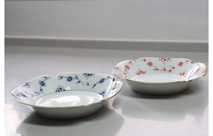 手描きのつる花唐草の模様はお料理を引き立てます。