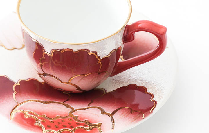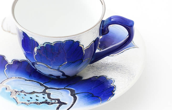 有田焼 虹彩牡丹コーヒーカップ&ソーサー(銀箔ルリ)or(金箔赤)