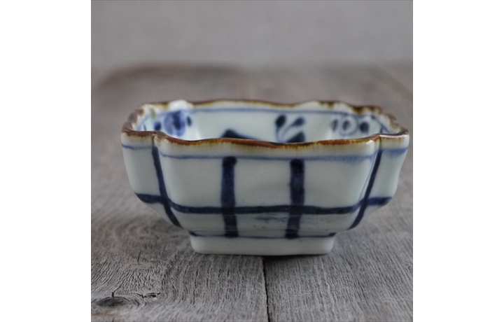 染付山水隅切小鉢