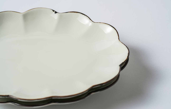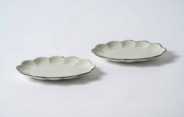 ・19.5cm楕円菊割皿(ホワイト釉サビ) ×2