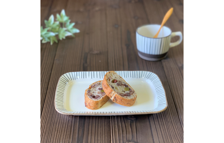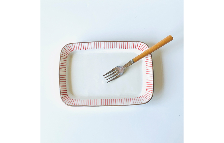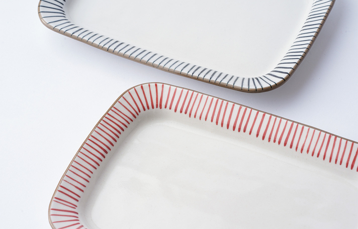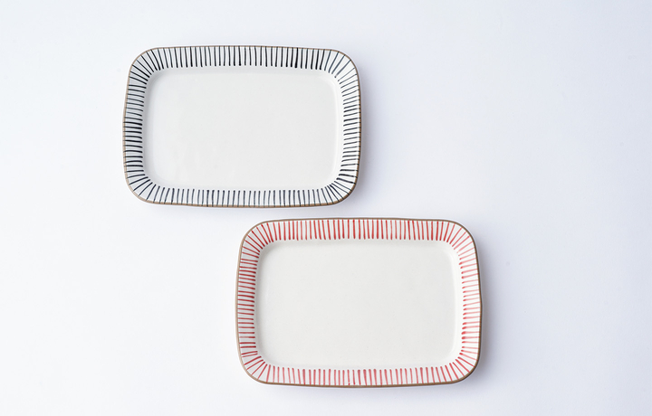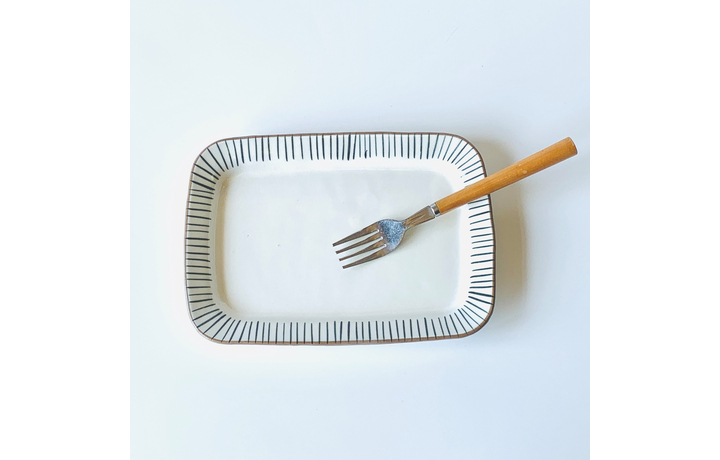 手描きでシンプルモダンなデザインなので、メイン料理からデザートまで幅広く使える長角プレートです。