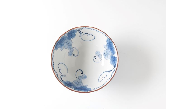 伝統的な絵柄であるぶどうの絵を内側に付けた大きな飯碗です。