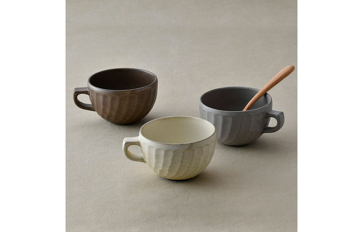 窯変(ようへん)ねじり鎬スープマグカップ3色セット!