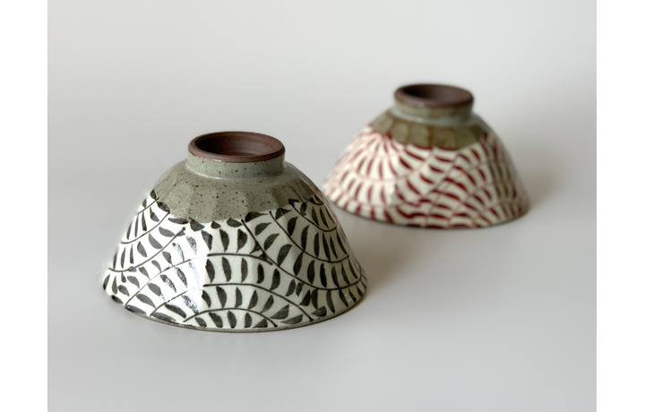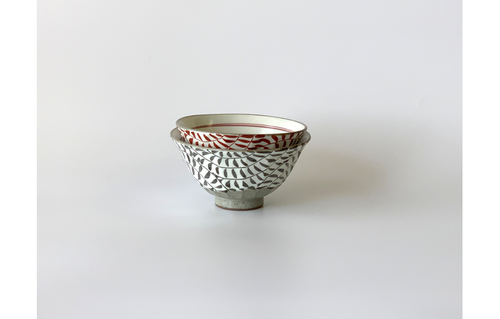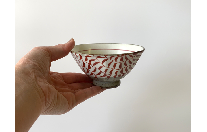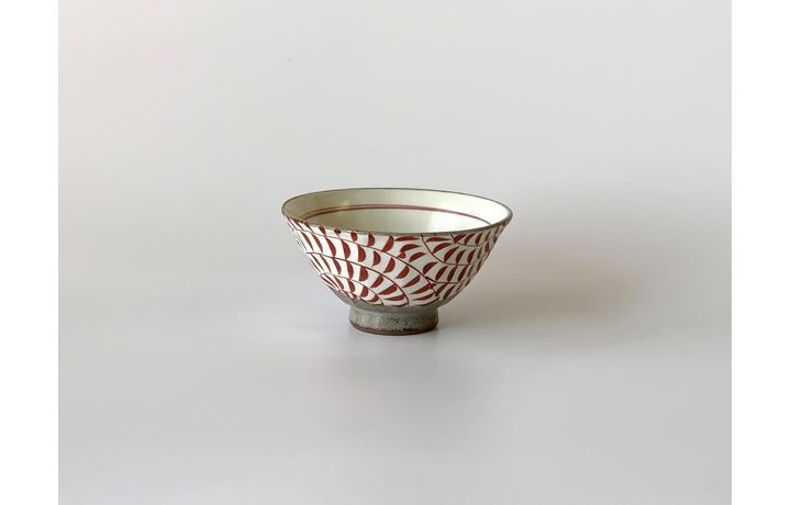 ・面取唐草茶碗レッド:1個【径11.8×高6.0cm 重160g】
