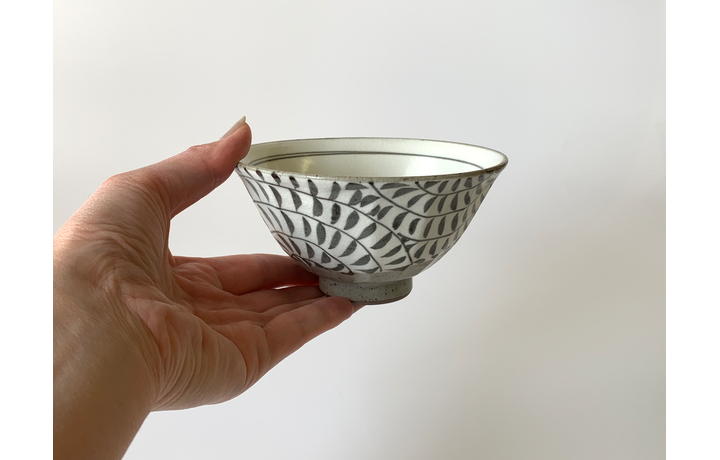 ・面取唐草茶碗ブラック:1個【径12.3×高6.5cm 重200g】