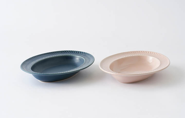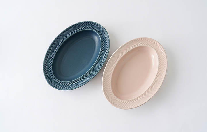 【波佐見焼 ローズマリー リムオーバルプレート デニム&ピンク 2色セット】