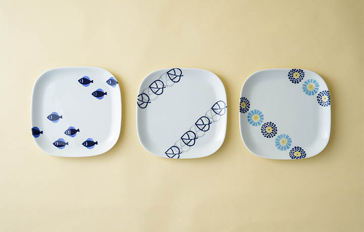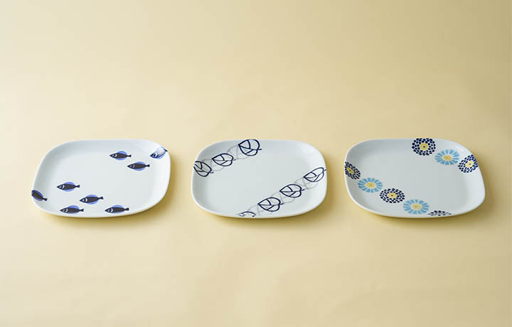 波佐見焼 丸紋菊・二色葉・フィッシュ モーニングプレート 3柄セット