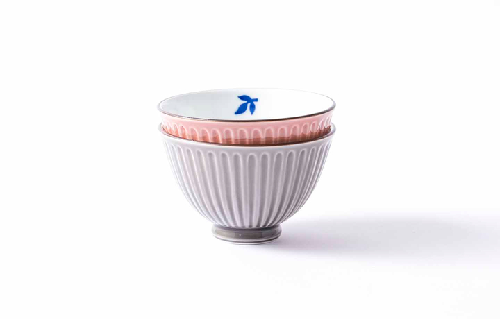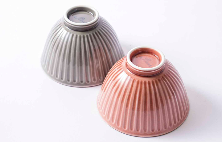 色釉のお茶わんにアクセントの削りが入った軽量のうつわです。内側は透明の釉薬を使う掛け分けの技法になります。2色をセットにしておとどけいたします。