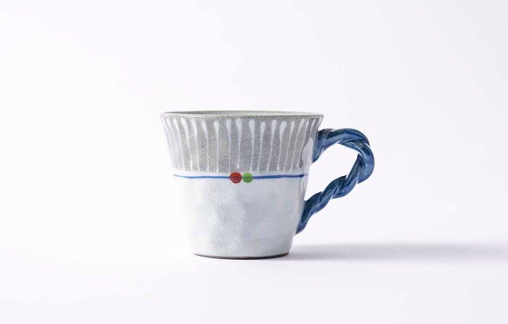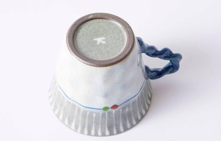 ふちの模様が可愛いちょっと小ぶりのマグカップは、長くお使いいただける人気の商品です。